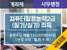 컴퓨터활용능력 2급(필기/실기) 취득 (월,화,수,목)